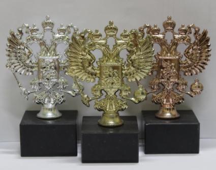Герб России, металл, высота 12,5 см с именным шильдиком