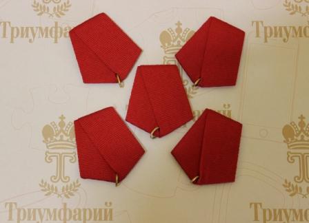 Пятиугольная колодка орденская с красной лентой является универсальным креплением для награждения орденами или медалями. Колодка орденская с различными лентами подбирается под конкретную медаль или орден и на вкус покупателя. В комплект поставки входит колечко для крепления.