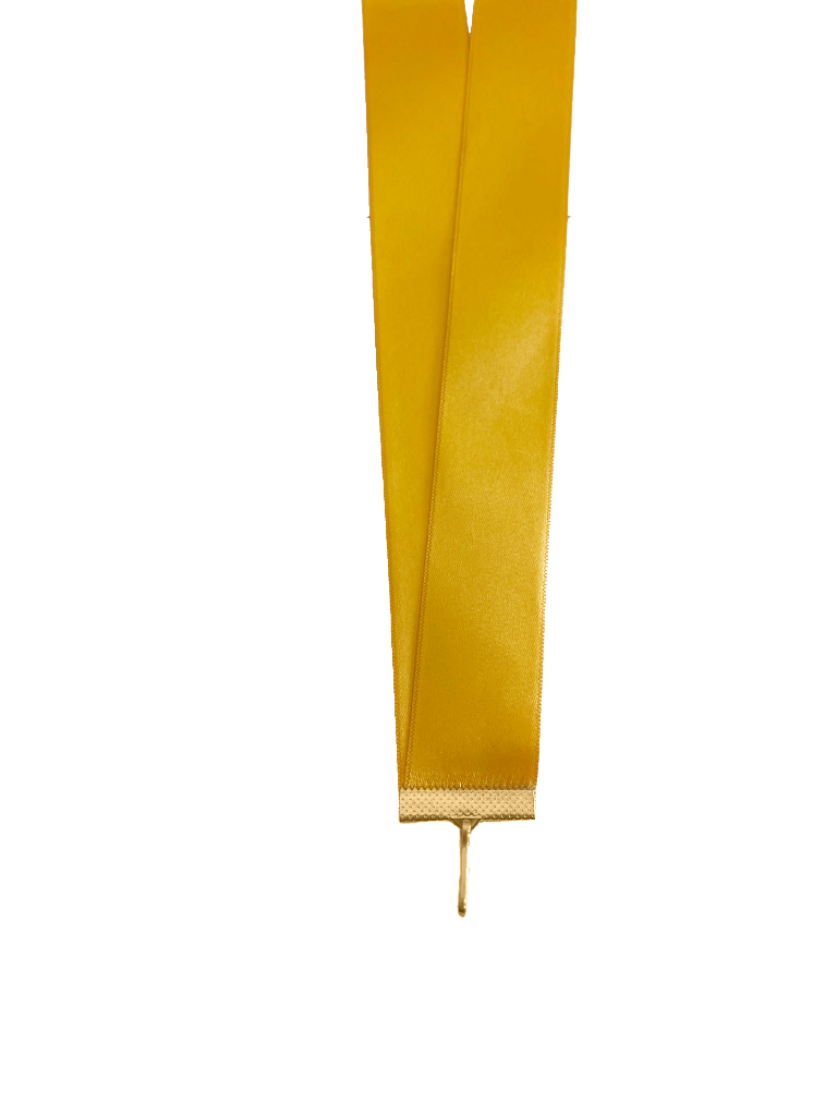 Лента для медали сатиновая с золотым зажимом идеально подходит для оснащения спортивных медалей и подбирается по ширине полотна относительно выбранных заготовок медалей. Длина 80 см.