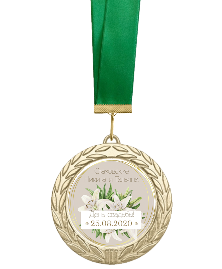 Медаль молодоженам диаметром 70мм, по настоящему достойная медаль для вручения! Высокий рельеф, красивый золотой цвет она приведет в восторг любого! Эта медаль уникальная, она полностью разработана и отлита в России на нашем предприятии, материал медали цинковый сплав с покрытием цветными металлами. Изображение внутри медали наносится на металлический алюминиевый шильдик, что гарантирует красивые и яркие цвета, лента из качественного и мягкого полиэфирного волокна.