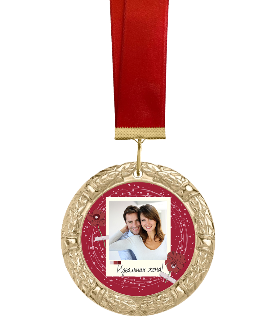 Медаль для жены диаметром 70мм, по настоящему достойная медаль для вручения! Высокий рельеф, красивый золотой цвет, по настоящему тяжелая она подарит незабываемые ощущения! Эта медаль уникальная, она полностью разработана и отлита в России на нашем предприятии, материал медали цинковый сплав с покрытием цветными металлами. Изображение внутри медали наносится на металлический алюминиевый шильдик, что гарантирует красивые и яркие цвета, лента из качественного и мягкого полиэфирного волокна.
