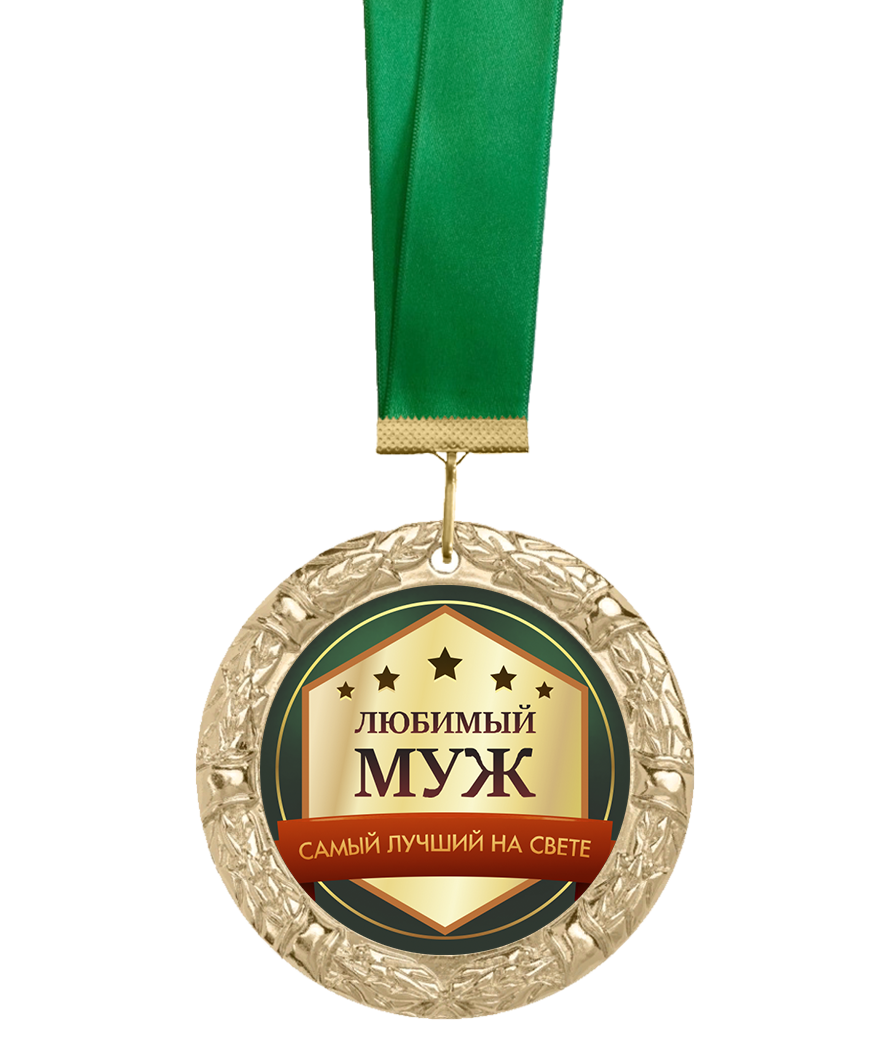 Медаль для мужа диаметром 70мм, по настоящему достойная медаль для вручения! Высокий рельеф, красивый золотой цвет, по настоящему тяжелая она подарит незабываемые ощущения! Эта медаль уникальная, она полностью разработана и отлита в России на нашем предприятии, материал медали цинковый сплав с покрытием цветными металлами. Изображение внутри медали наносится на металлический алюминиевый шильдик, что гарантирует красивые и яркие цвета, лента из качественного и мягкого полиэфирного волокна.