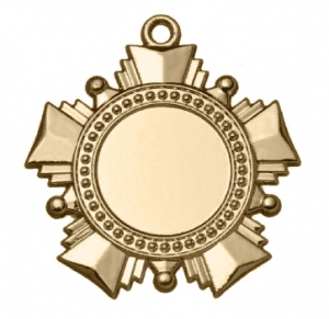 Медаль имеет форму пятиконечного креста. В центре медали место под шильдик диаметром 25 мм. Также с обратной стороны имеется место под второй шильдик диаметром 25 мм. Подходит для изготовления спортивных наград на ленте. Идеально смотрится в качества ордена на колодке для награждения в военно-патриотической, корпоративной и бытовой тематиках.