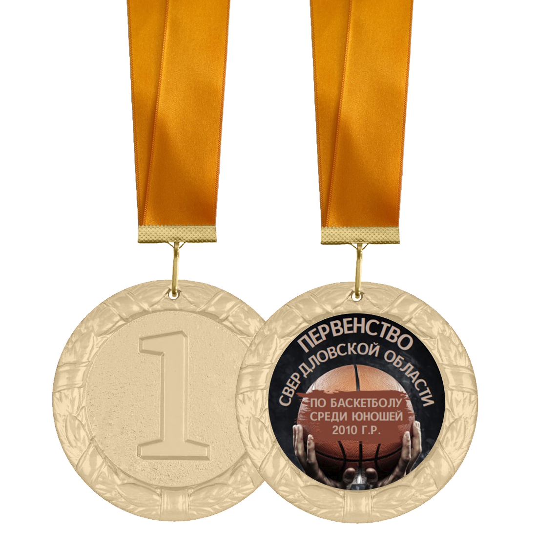 Объёмная медаль 70мм с атласной лентой "Первенство по баскетболу" Есть возможность заказать индивидуальный дизайн