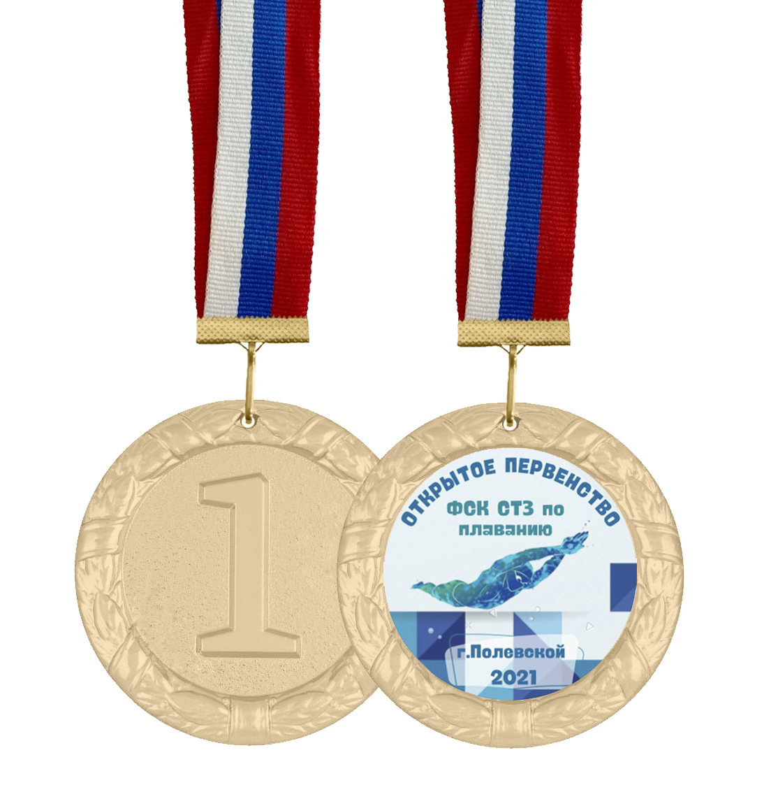 Медаль Первенство по плаванию 70мм, Вы можете заказать свой индивидуальный дизайн.