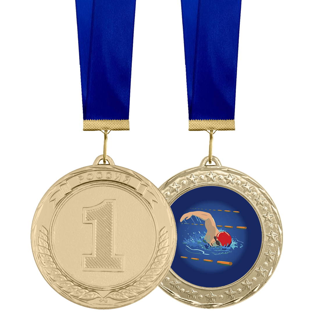 Медаль по плаванию 70мм, Вы можете заказать свой индивидуальный дизайн.Лента входит в стоимость.