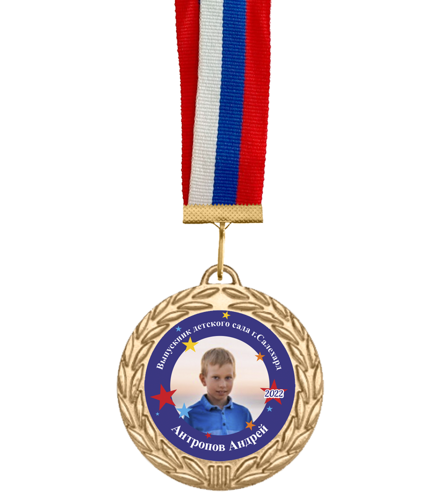 Медаль для Выпускника детского сада диаметром 50мм, по настоящему достойная медаль для вручения! Высокий рельеф, красивый золотой цвет она приведет в восторг любого ребенка! Эта медаль уникальная, она полностью разработана и отлита в России на нашем предприятии, материал медали цинковый сплав с покрытием цветными металлами. Изображение внутри медали наносится на металлический алюминиевый шильдик, что гарантирует красивые и яркие цвета, лента из качественного и мягкого полиэфирного волокна.