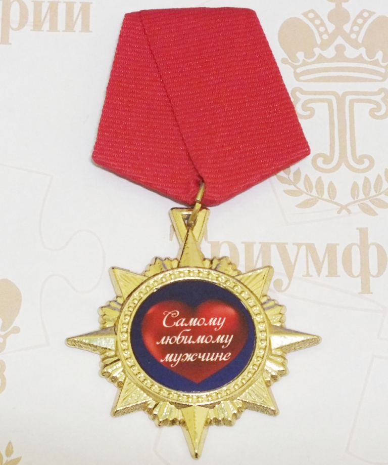 Орден подарочный "Самому любимому мужчине" на колодке. Цвет колодки возможен другой. Надписи и оформление меняются по желанию, указывайте пожелания в комментарии при оформлении заказа. Также возможно нанесение надписей и фото с обратной стороны.