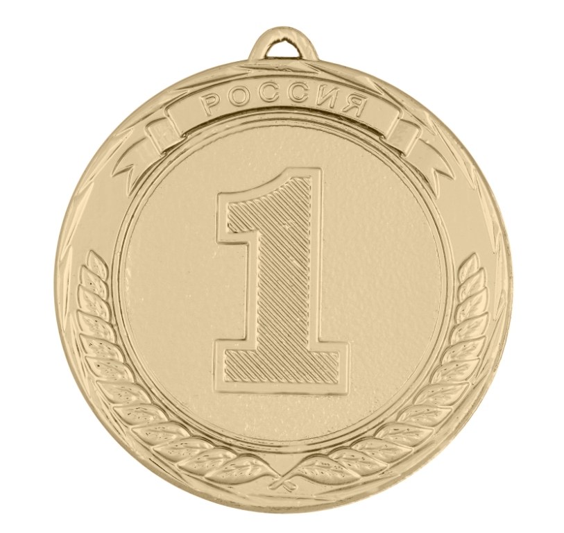 Круглая универсальная медаль диаметром 70 мм оригинального дизайна. На лицевой стороне по кругу расположены сверху-флаг с надписью Россия, снизу-лавровый венок. По центру находятся цифры 1;2;3. С обратной стороны по окружности находится широкое поле с изображением больших и малых звезд, в центре находится место под шильдик диаметром 50 мм. Универсально подходит для любых видов награждений.