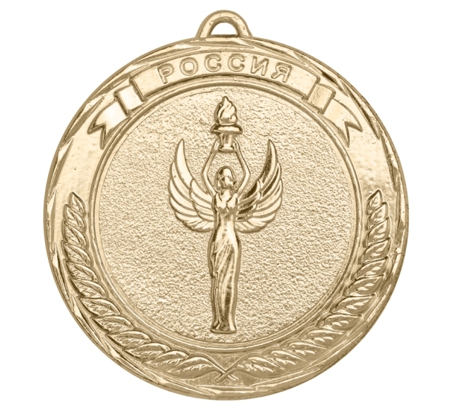 Круглая универсальная медаль диаметром 70 мм оригинального дизайна. На лицевой стороне по кругу расположены сверху-флаг с надписью Россия, снизу-лавровый венок.По центру находится объемное изображение Ники. С обратной стороны по окружности находится широкое поле с изображением больших и малых звезд, в центре находится место под шильдик диаметром 50 мм. Идеально подходит для награждения чемпионов и победителей.